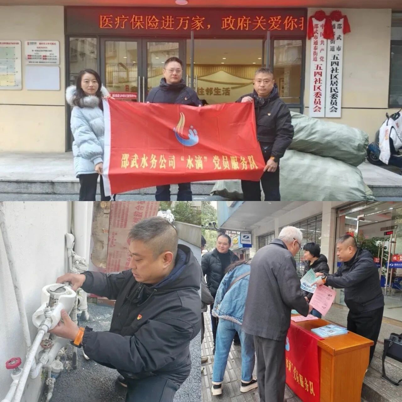 公司“水滴”黨員服務(wù)隊(duì)向居民宣傳供水設(shè)施防寒知識(shí),現(xiàn)場(chǎng)解答水表防凍等應(yīng)急問題,并為五四社區(qū)免費(fèi)贈(zèng)送300個(gè)水表保護(hù)套,指導(dǎo)工作人員現(xiàn)場(chǎng)安裝。同時(shí),公司提前備足管材、閘閥、水表等搶修物資,搶修人員與車輛24小時(shí)待命,確保故障“隨報(bào)隨修、快速處置”。
