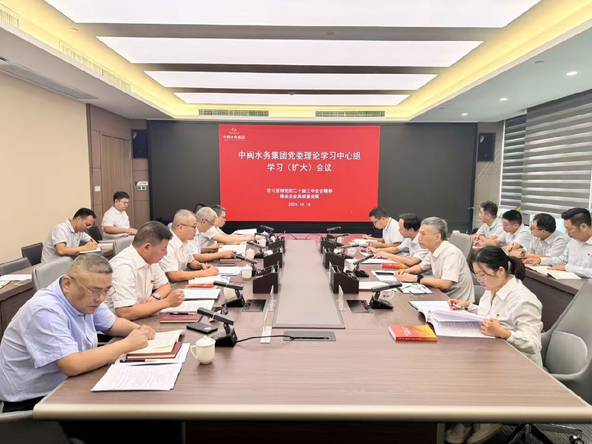 中心組學習會上,公司黨委以“學習貫徹黨的二十屆三中全會精神 推動企業(yè)高質(zhì)量發(fā)展”為主題進行深入學習,各黨委委員結(jié)合工作實際開展交流研討。翁宇航在點評中指出,本次學習準備充分、主題鮮明、內(nèi)容豐富,集體研討能緊扣集團公司高質(zhì)量發(fā)展大局,并結(jié)合中閩水務(wù)集團業(yè)務(wù)特點,達到了預(yù)期目的。